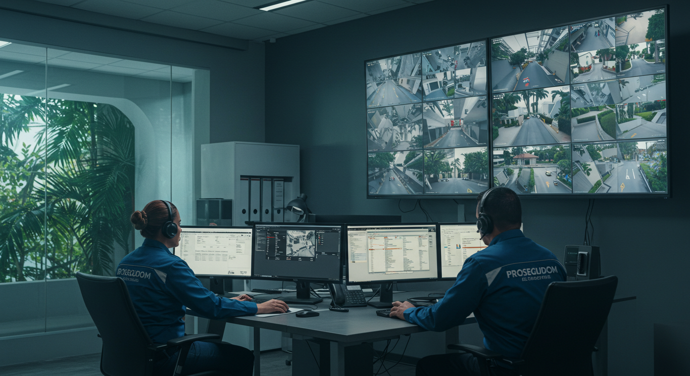Supervisión continua de cámaras y alarmas desde nuestro centro de control. Prosegudom detecta cualquier evento sospechoso y activa protocolos 24/7 para mantener tu seguridad.